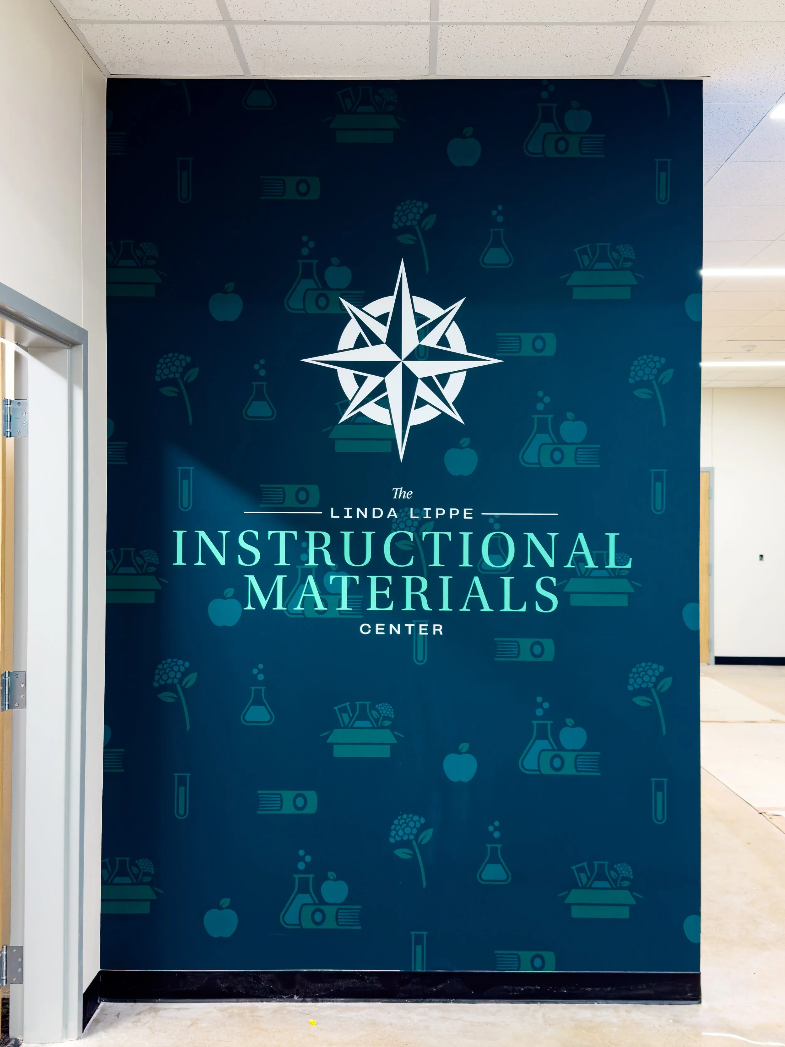 With the Instructional Materials Center sharing the same space, and with its entrance being directly across from that of the Compass Center, I wanted to tie the two brands together as much as possible. Using the same palette of colors, and setting the names of the two facilities in the same typefaces and hierarchies, the brands have a shared visual language that will work well together in any instances where they exist alongside each other.